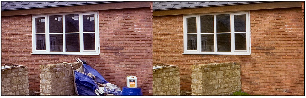 The property still needs a door and some walls but it’s almost done. Sky has been added and colour tweaked. We can now see the potential of the house weeks before it’s finished. From building site to a home in no time at all.